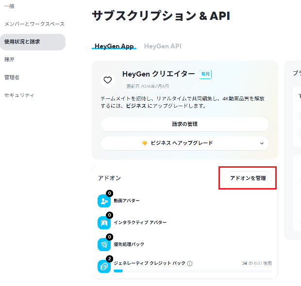 追加のGenerative Credits Packsを購入したらアドオン管理で設定変更が必須