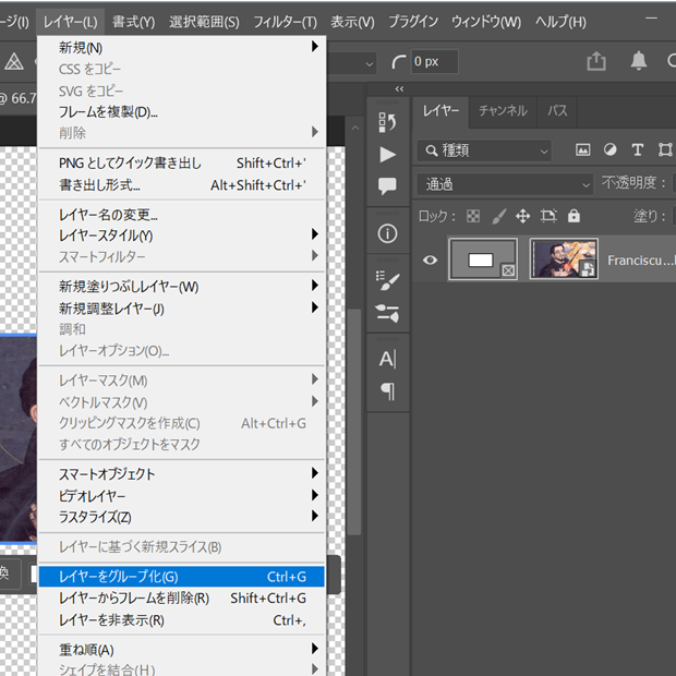 この状態にするには、フレームを使ったレイヤーだけを選択しておいてから、メニュー[レイヤー]-[レイヤーをグループ化]です。