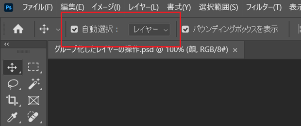 [移動ツール]オプションの[自動選択]チェックボックスをOffにする