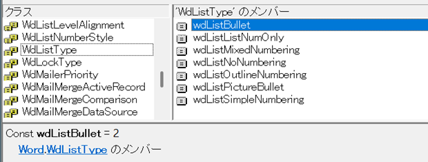 WdListType列挙型に定義されている定数wdListBullet(直値:2)のときに、