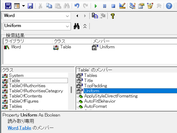 Word VBAで表を表すTableオブジェクトにのUniformプロパティは、