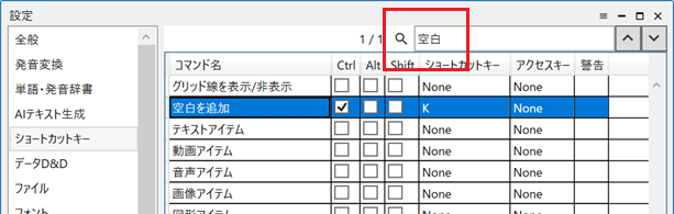[空白を追加]コマンドにショートカットキーを指定
