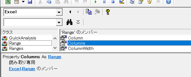 Rangeオブジェクトが持つColumnsプロパティを使えば、