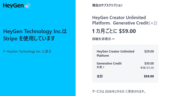 HeyGenは、基本的にはCreatorプランなら月額29ドルです。