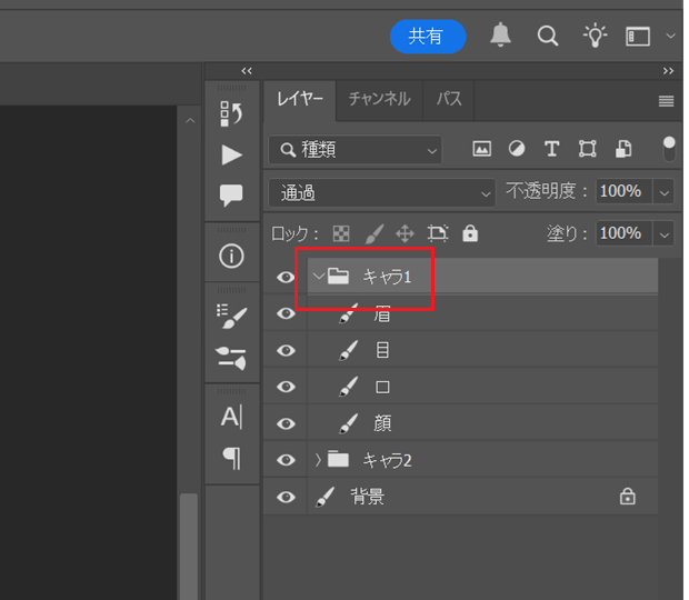Photoshopでレイヤーが増えると、グループ化は必須です。