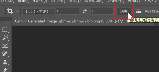 以下の操作を行うことで、切り抜きツールの縦横比固定が解除され、自由に切り抜きができるようになります。