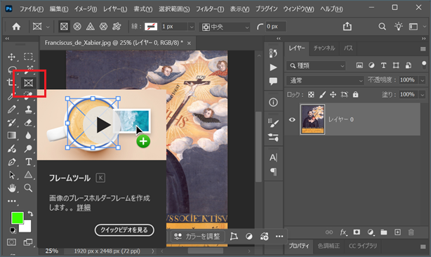 1枚のレイヤーをトリミングする方法はいくつもありますが、最近のPhotoshopなら、フレームツールを使うのが簡単だと感じます。