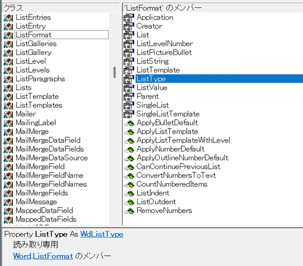 で、ListFormatオブジェクトのListTypeプロパティの戻り値が、