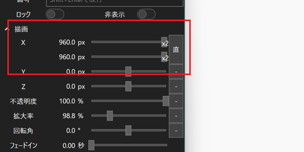 [描画]-[X]の上側の値を、覚えておいた値に変更