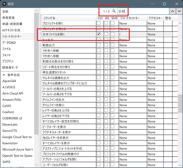 私の場合は、台本をインポートするという意味で[Ctrl]+[I]を割り当てています。