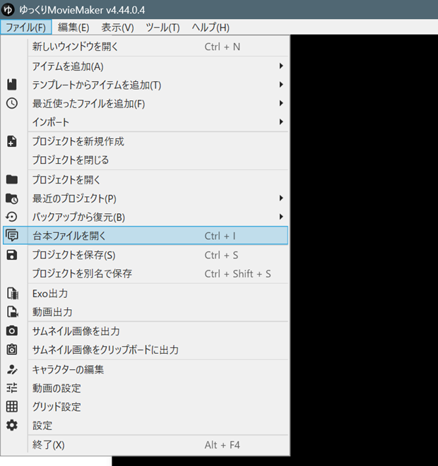ゆっくりムービーメーカーを使っていて私の場合、メニュー[ファイル]-[台本ファイルを開く]コマンドをよく使います。